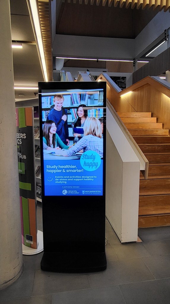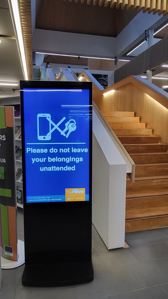 The library also had them too, The Hive, which is a cultural landmark for Worcester and the first hybrid university and public library for both students and the public. It was also opened by the Queen herself in 2012. The Hive is a cultural magnet for people who want to know more about Worcester and expand their knowledge in general, they also have a digital totem ad, so having an ad of the Museum featured there would also be ideal!