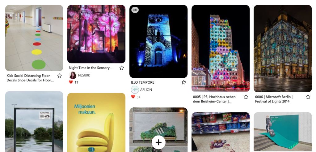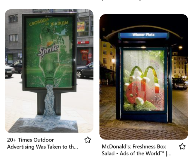 Again, I attended a peer group session with Alan and Kristian, both very proactive members of the cohort and are always very welcoming and collaborative, I really do appreciate them for this and bringing more people together! I shared with them my Pinterest board inspiration for brief 3, as I had to started to look into outdoor-based advertising campaigns. I particularly liked the idea of projecting onto buildings to represent campaigns or just to make a very interactive advert move. What I find is the people of Worcester really like interactive outdoor campaigns.