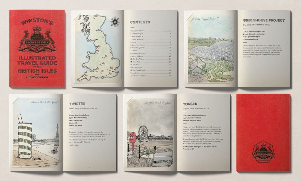 For this week, I looked into the Research Task in particular, and stumbled upon WeAreBeard. They are a graphic design studio based in Worcestershire, and do extensive work throughout the whole of UK, and I love how interactive and engaging their website is. Their project for a cocktail bar, Her Majesty’s Secret Service, combines both illustration and typography to create a unique branding for the bar. I also really like how they designed their menu to look like pocket travel journals, which is a really neat touch!