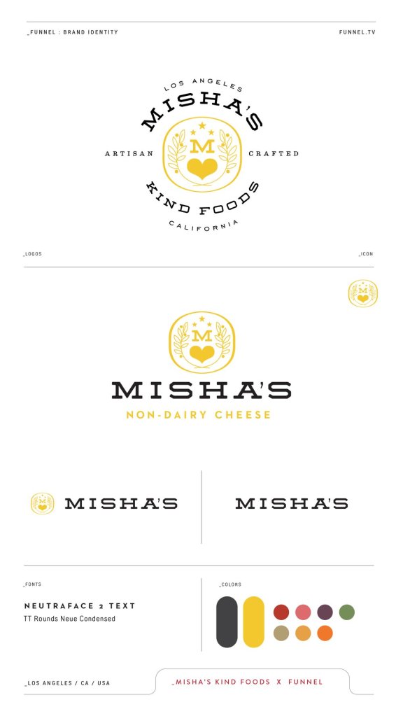 I particularly want to highlight Eric’s work on Misha’s Kind foods for their non-dairy cheese product. He has effectively made use of vibrant colours without it being so garish, and combining both serif and sans serif font tastefully to emulate a farmer-style of branding.